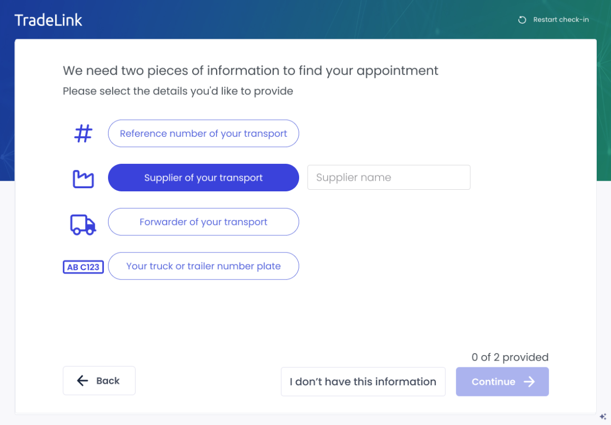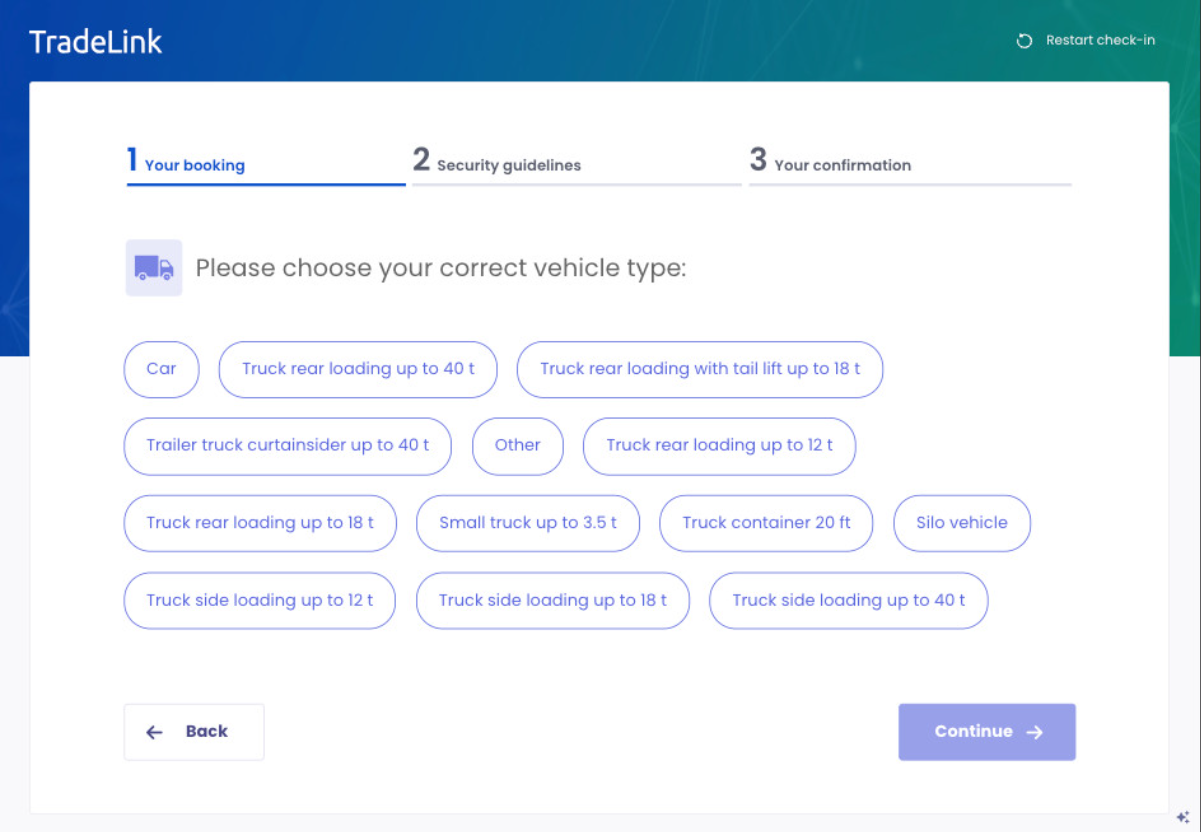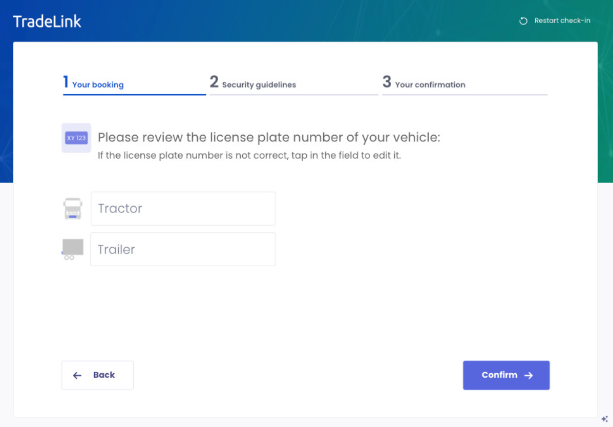 Tipp: Fahrer mit einer TL-ID profitieren von einem 40% schnelleren Abfertigungsprozess. Stelle deshalb sicher, dass der Spediteur oder Lieferant dem Fahrer die TL-ID vor der Ankunft aushändigt.