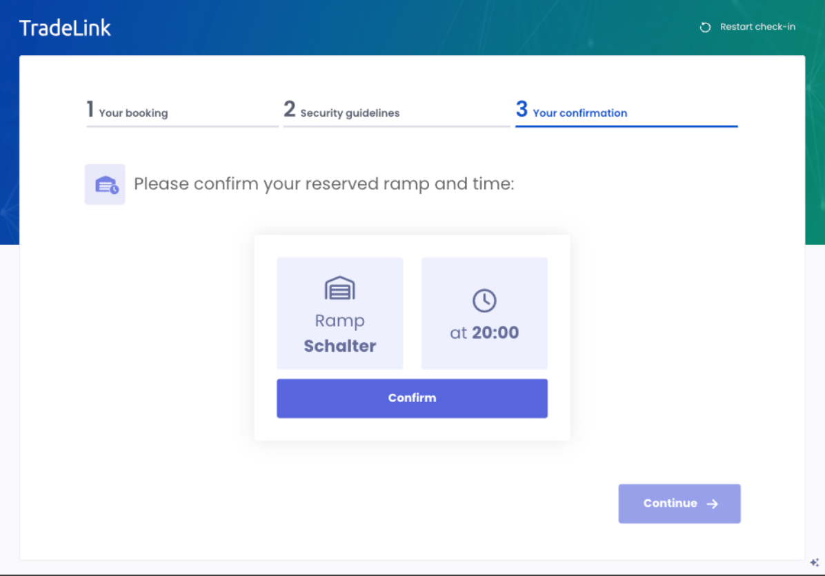 Bestätigung erhalten der zugewiesenen Rampe und des Zeitfensters