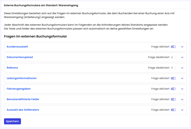 Mit den externen Buchungsformularen definierst du, welche Informationen deine Partner bei der Slotbuchung an deinem Standort angeben können bzw. müssen.