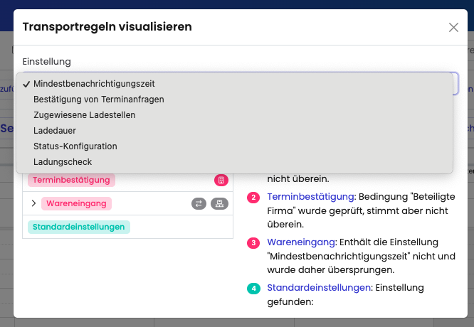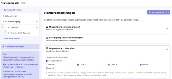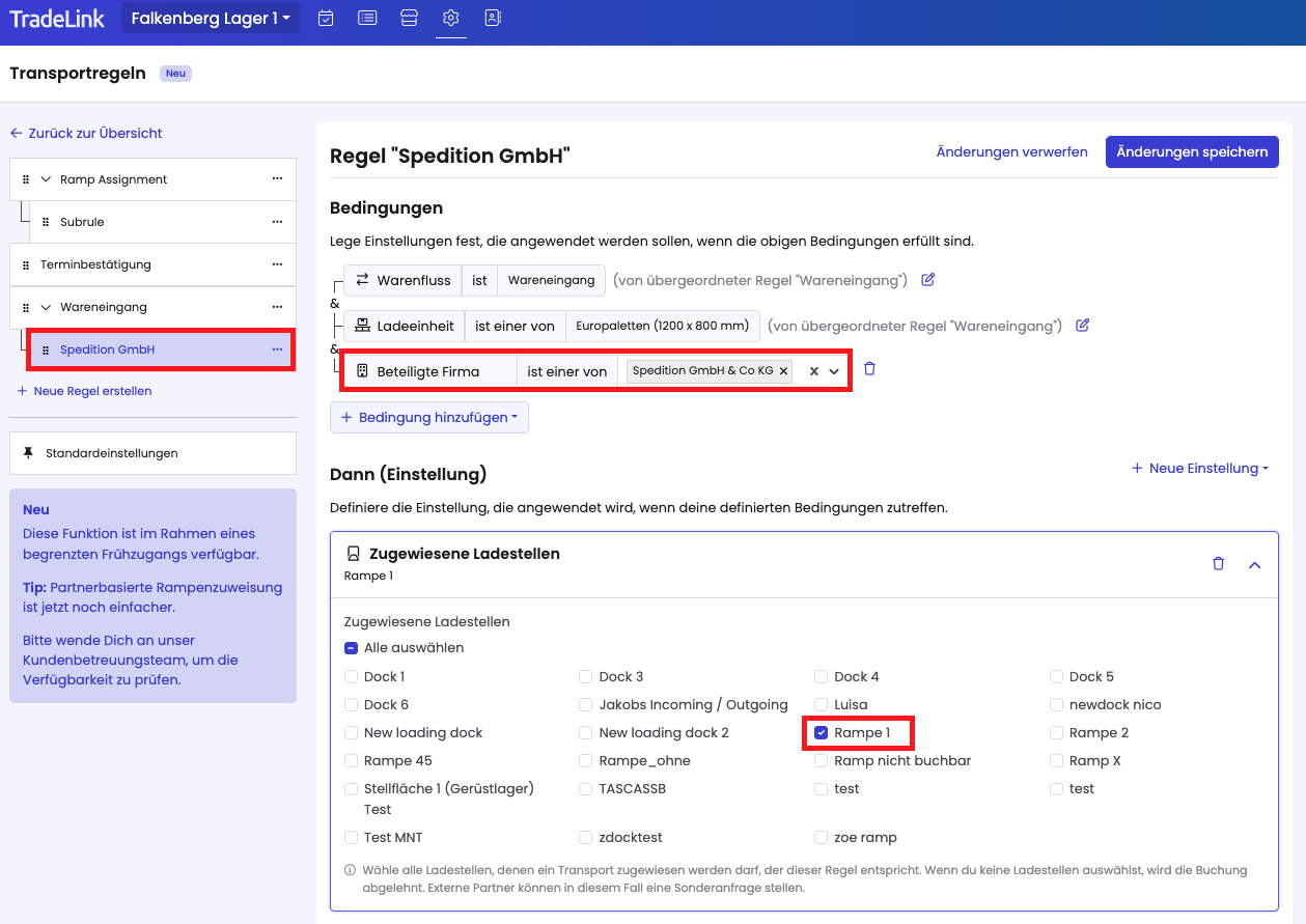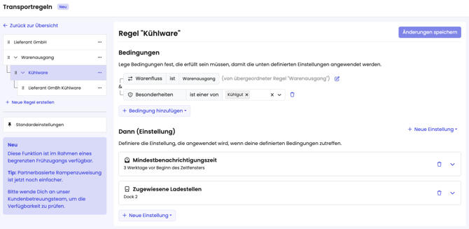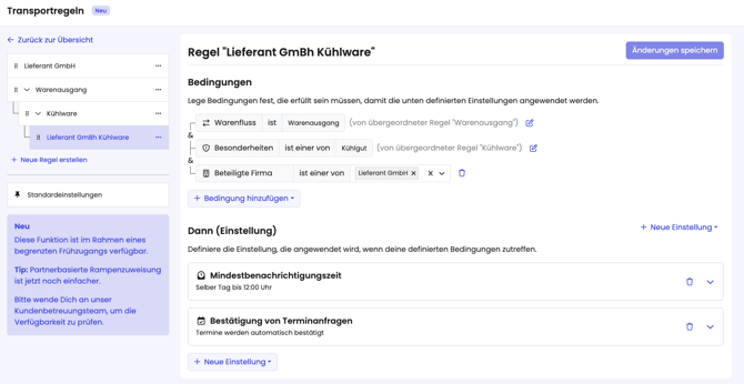 Die Business Rule Engine ermöglicht es dir festzulegen, welche Rampe bestimmte Partner buchen dürfen. - Mindestbenachrichtigungszeit