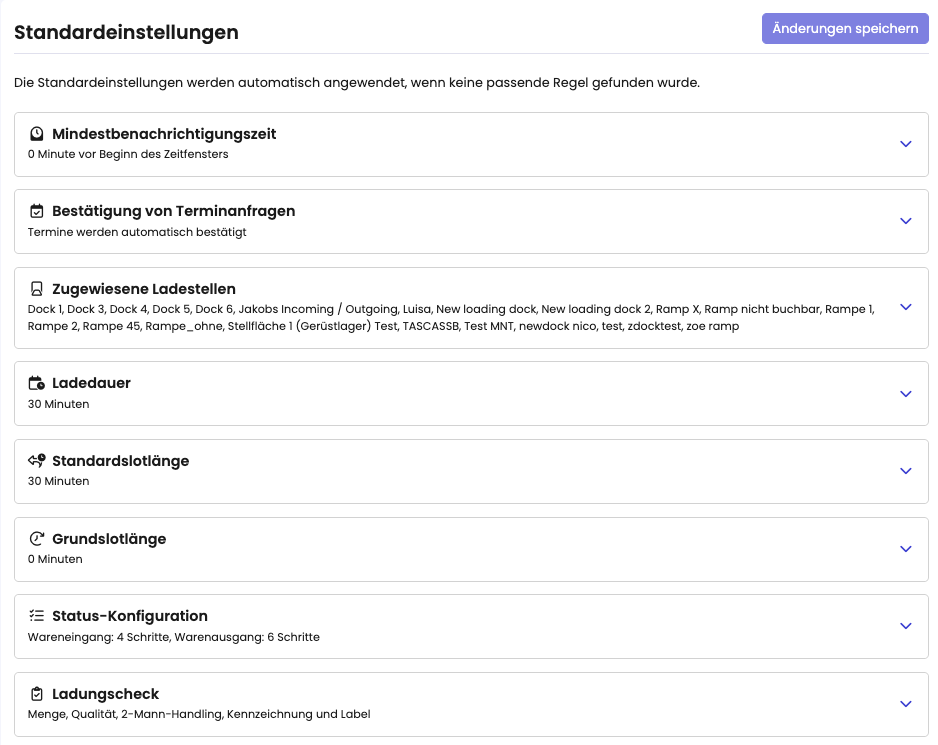 Einstellungen – wie Bestätigungsanforderungen, Mindestvorlaufzeiten und mehr – sind nun zentral an einem Ort gebündelt und dadurch einfacher zu verwalten.