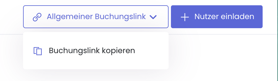 Dort findest du neben dem Button "+ Nutzer einladen" einen neuen Button "Allgemeiner Buchungslink". Diesen kannst du aufklappen, um den Link zu kopieren.