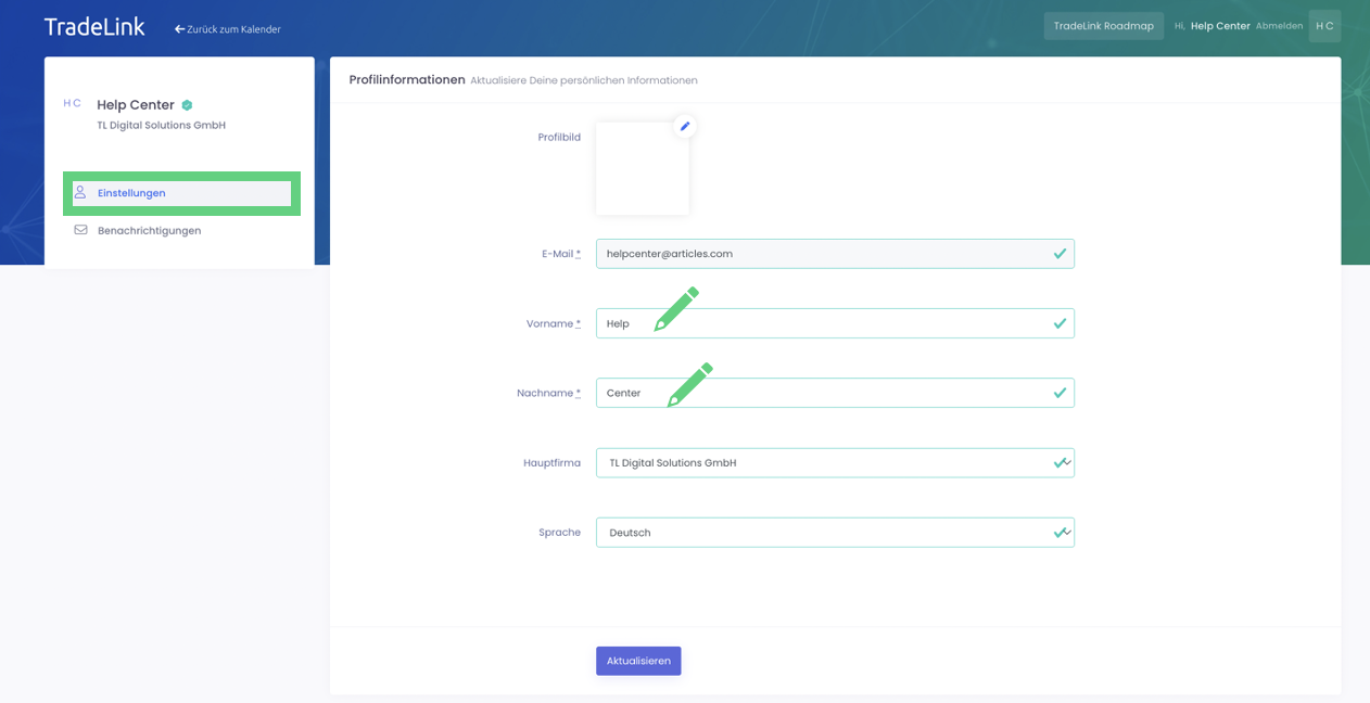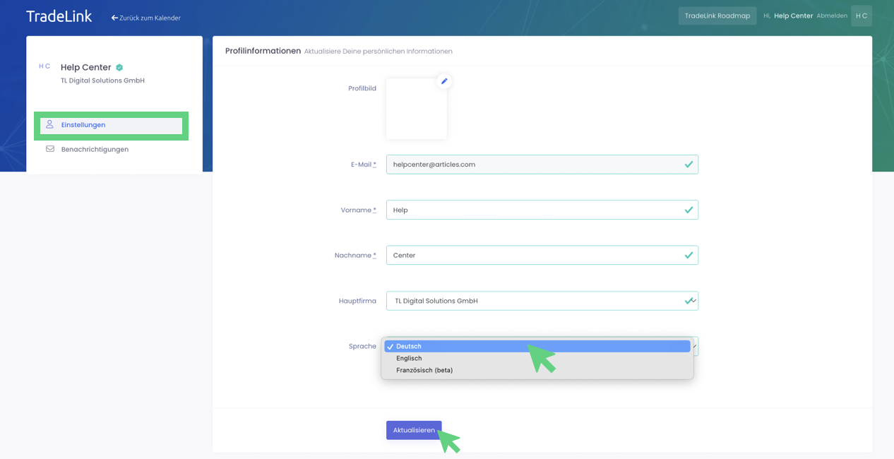 Persönliche Daten und Benachrichtigungen | TradeLink Help Center