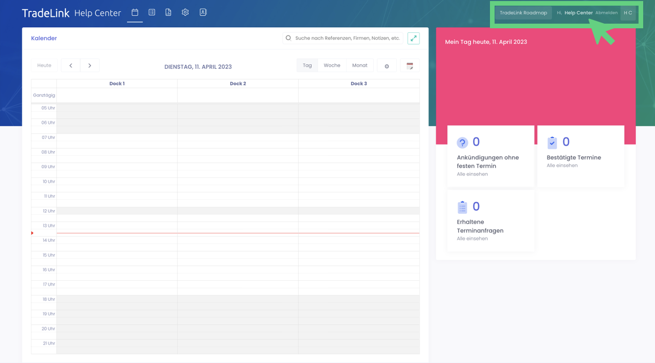 Logg dich mit deinem Nutzeraccount bei TradeLink ein und klicke oben rechts auf deinen Namen.
