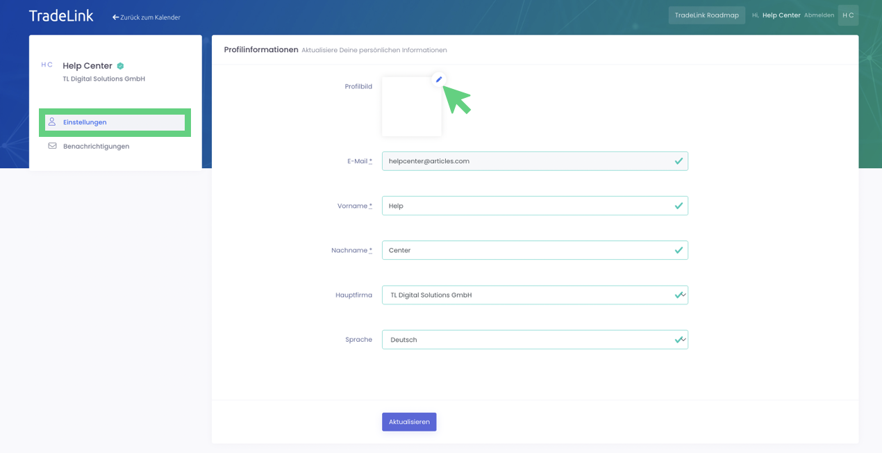 Gib deinem TradeLink-Account einen persönlichen Touch und lade ein Profilbild hoch, indem du auf den Stift klickst und ein Bild hochlädst.