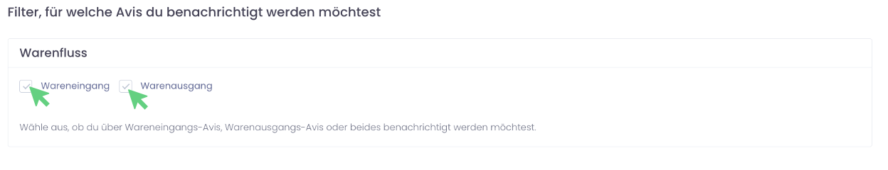 Außerdem kannst du angeben, über welchen Warenfluss du benachrichtigt werden möchtest: