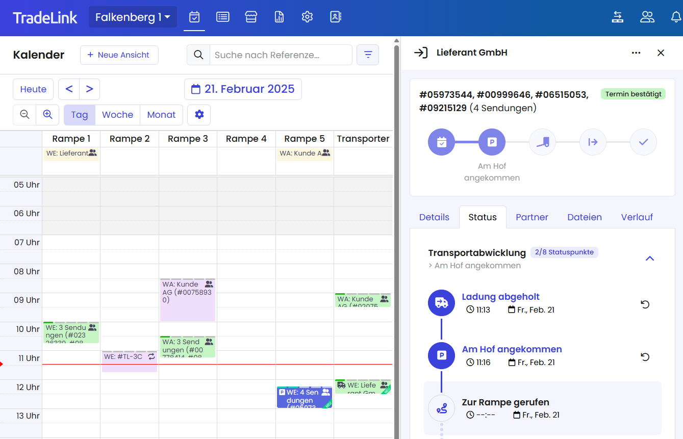 Statuspunkte zeigen den aktuellen Stand einer Buchung und sorgen dafür, dass am Lager alle Beteiligten in Echtzeit informiert sind.