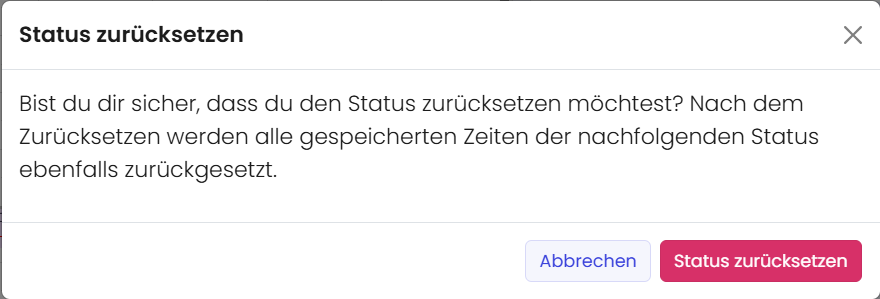 Hast du versehentlich den falschen Status gesetzt? Kein Problem! Klicke einfach auf den vorherigen Statuspunkt und bestätige mit „Status zurücksetzen“, um ihn zu korrigieren.