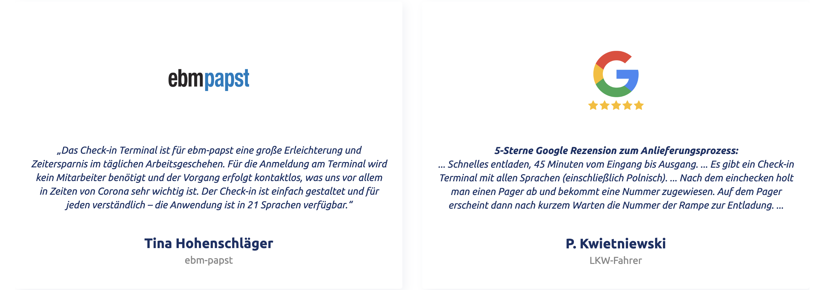 Das Check-In Terminal ist bei mehreren Kunden bereits im Einsatz, so beispielsweise bei ebm-papst in Landshut: