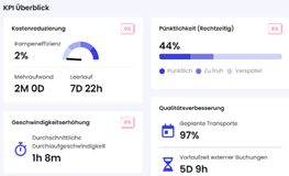 Erhalte auf einen Blick die wichtigsten Kennzahlen zu Kostenreduzierung, Pünktlichkeit, Geschwindigkeit und Qualitätsverbesserung – ohne tiefere Analyse möglich.