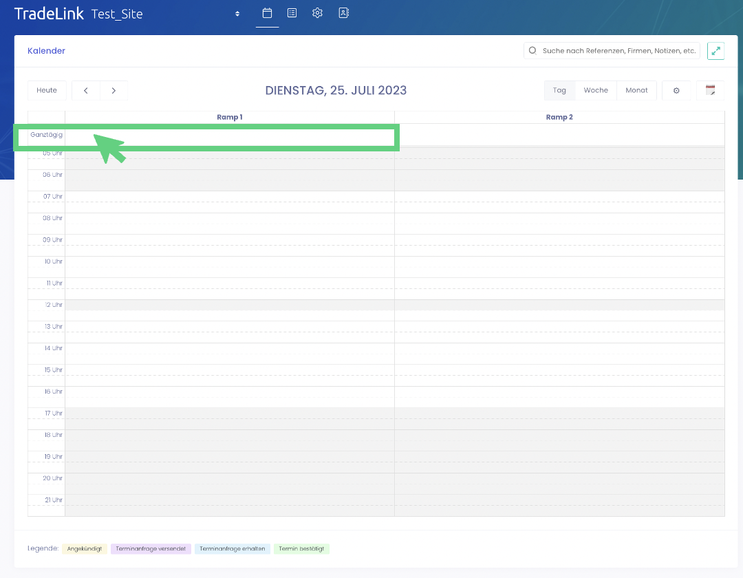 Um eine Vorankündigung zu erstellen, musst du im oberen Bereich des Kalenders auf das Feld 'Ganztägig' klicken.