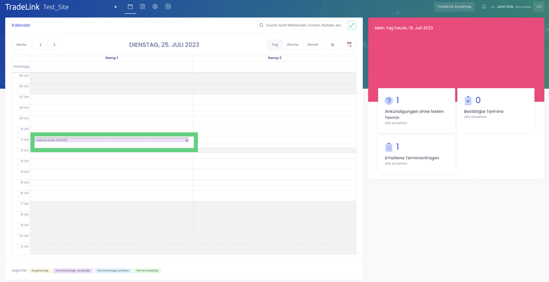 Die Buchung wird dir nun als festes Zeitfenster im Kalender angezeigt: