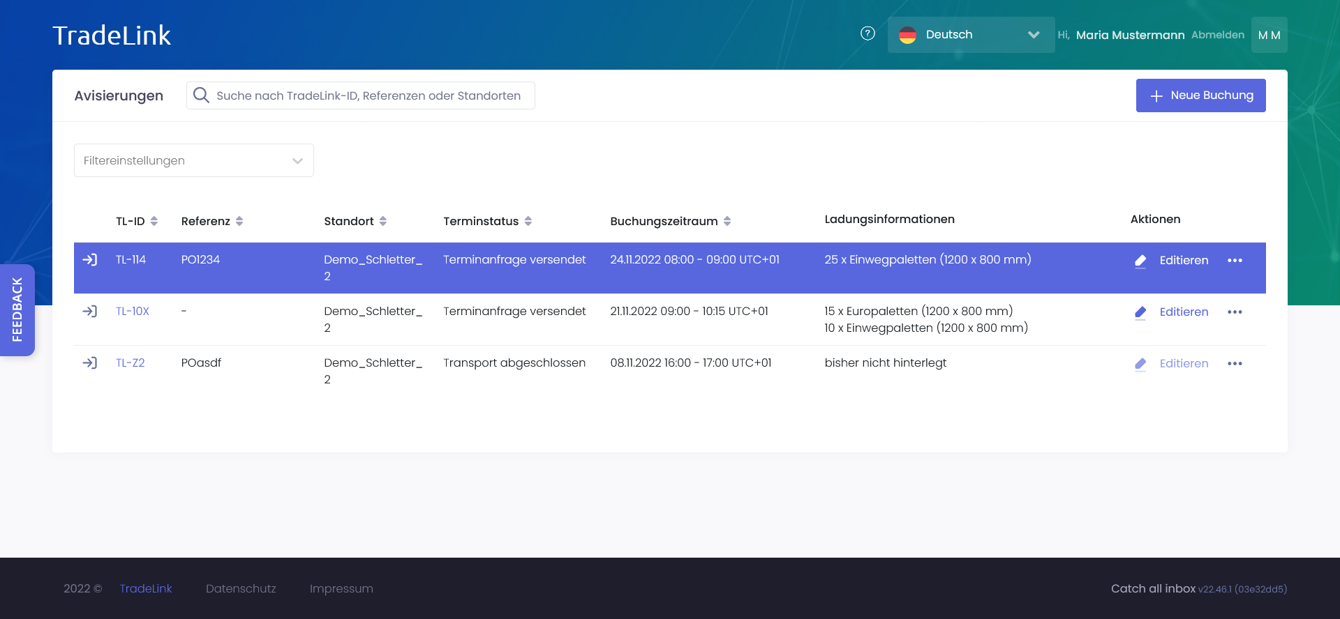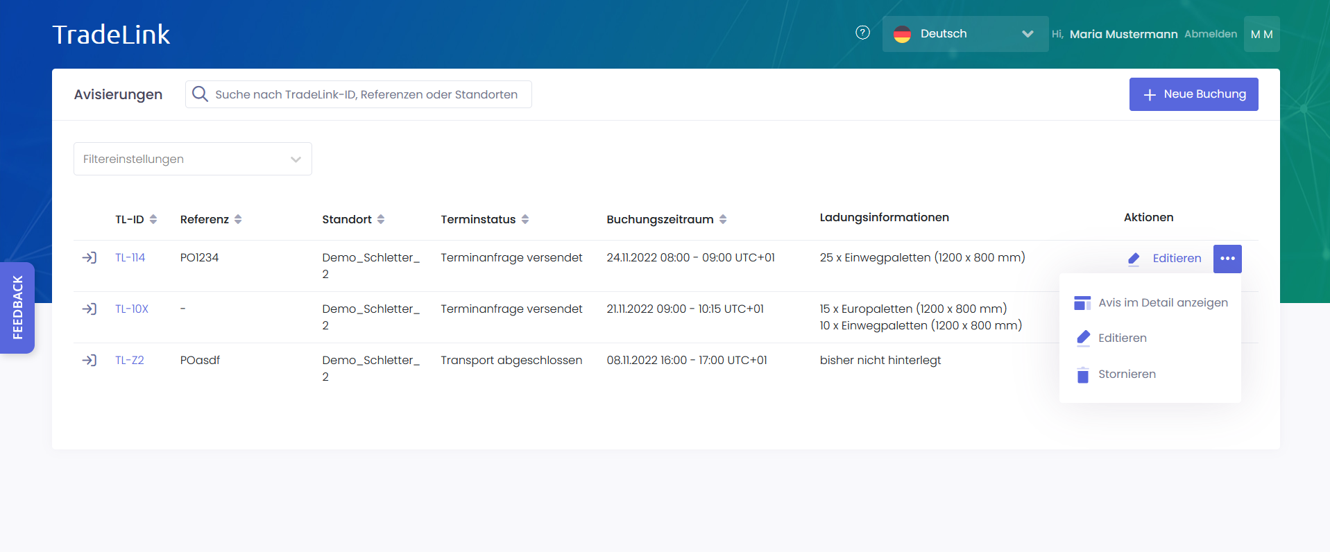 Ein TradeLink-Konto bietet dir eine persönliche Übersicht über alle deine Transporte, einschließlich der von deinen Partnern erstellten Buchungen.