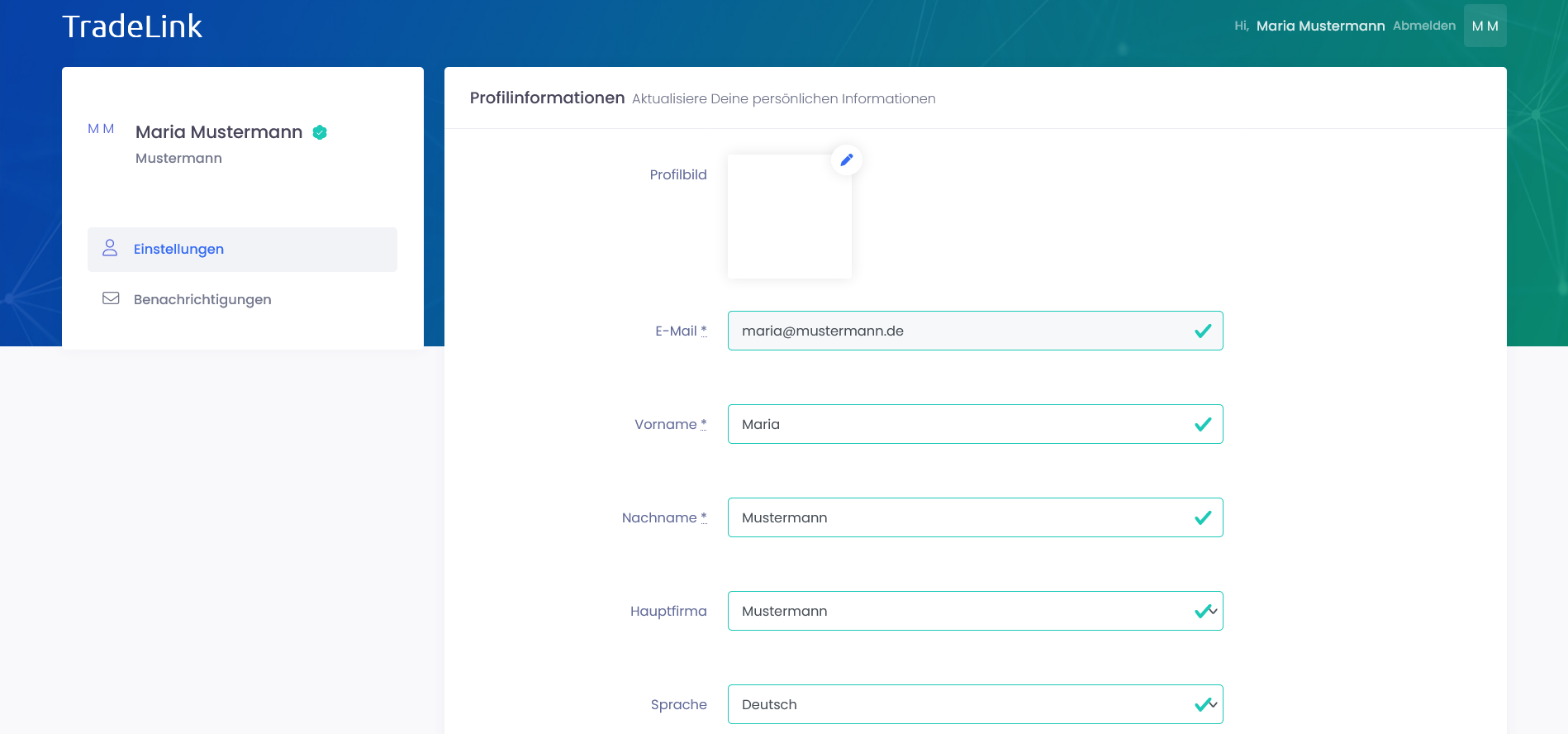 Du kannst deine persönlichen Einstellungen, Kontaktdaten und Benachrichtigungseinstellungen verwalten.