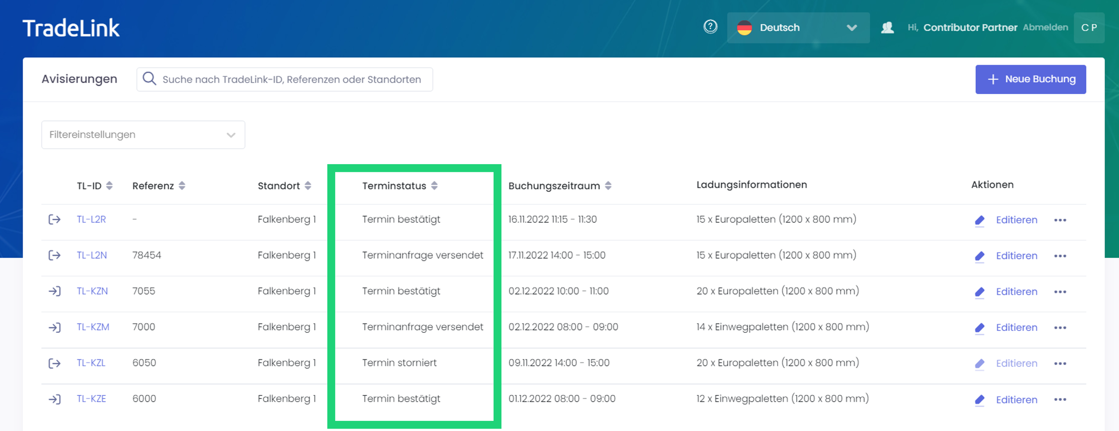 Der Terminstatus in der Listenansicht unterstützt zusätzlich bei der Verwaltung von Buchungen. Hier kann eingesehen werden, ob getane Buchungen bestätigt wurden.