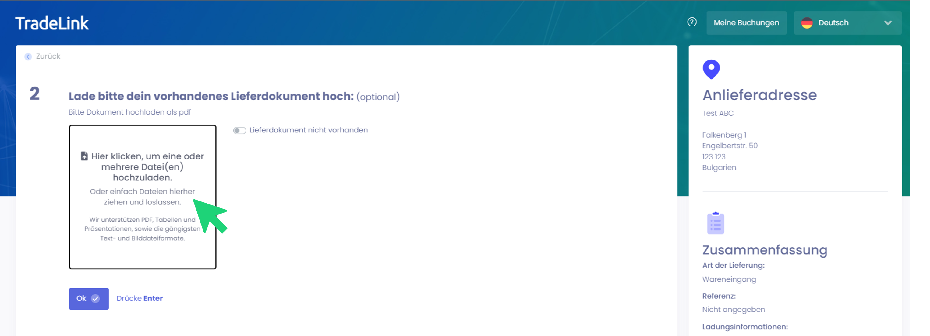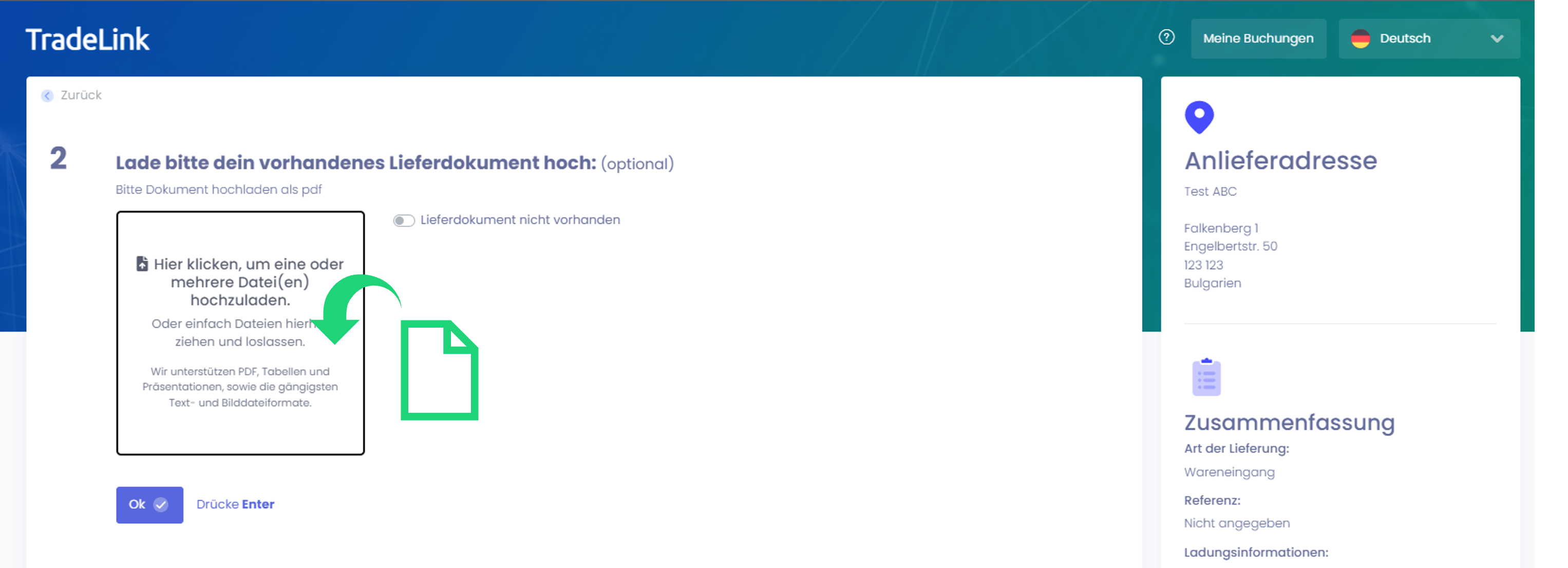 Wie kann ich Dokumente während der Buchungserstellung zu meiner Buchung hinzufügen? | TradeLink Help Center