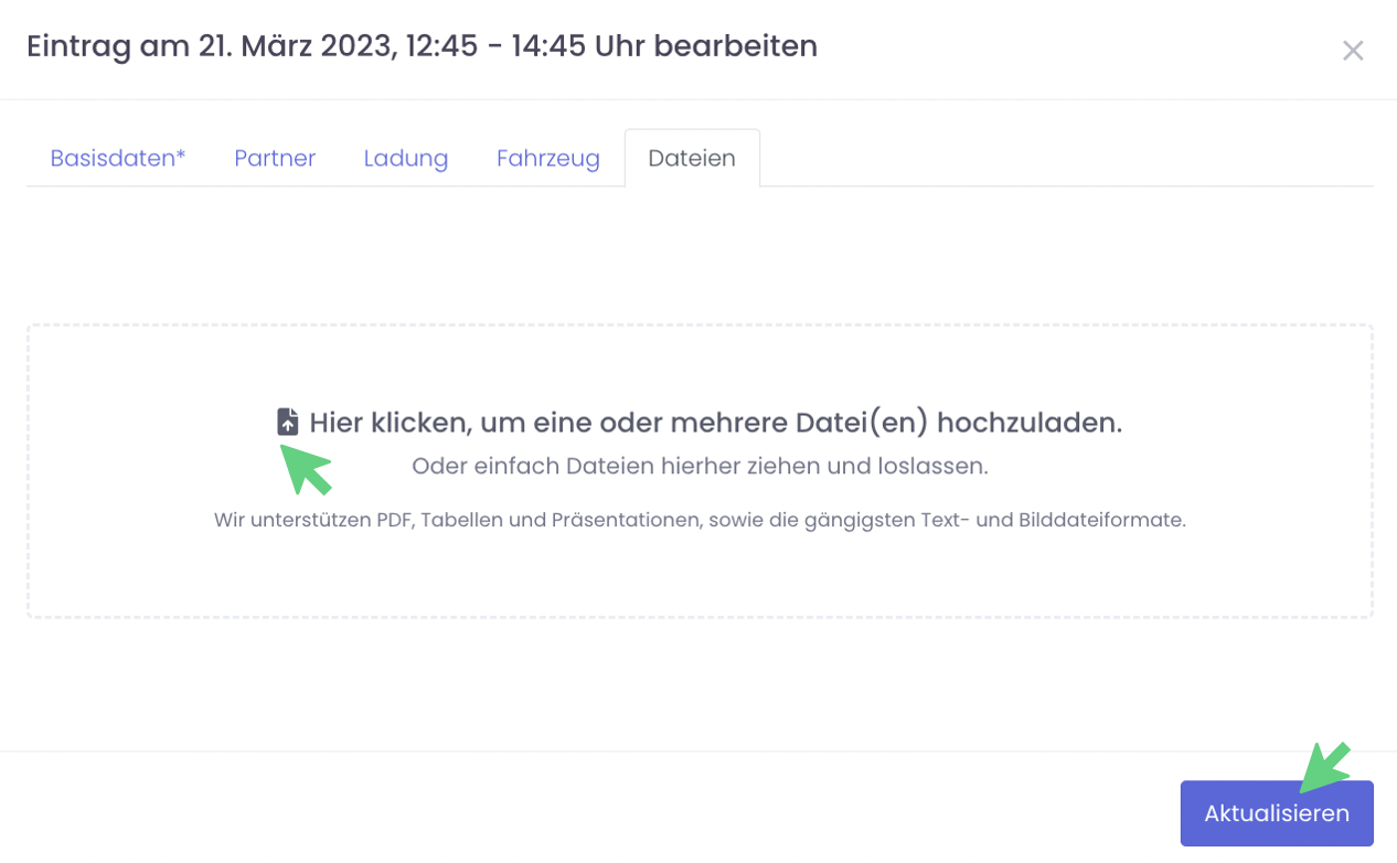 Außerdem kannst du unter dem Reiter “Dateien” auch nachträglich Dokumente hochladen.