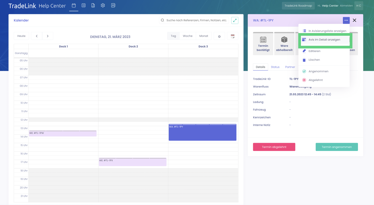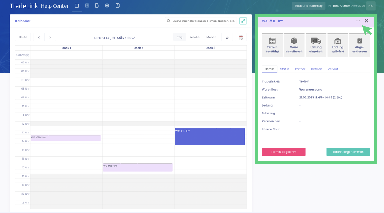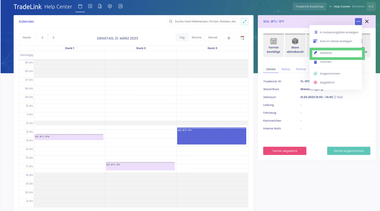 Öffne dein TradeLink Kalender und wähle die Buchung aus, die du gerne bearbeiten möchtest.