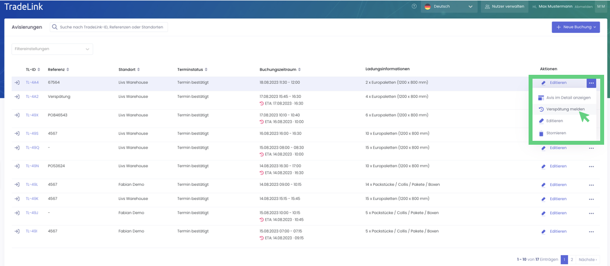 Wie kann ich eine Verspätung melden oder einen neuen Termin vereinbaren? (mit TL Account) | TradeLink Help Center