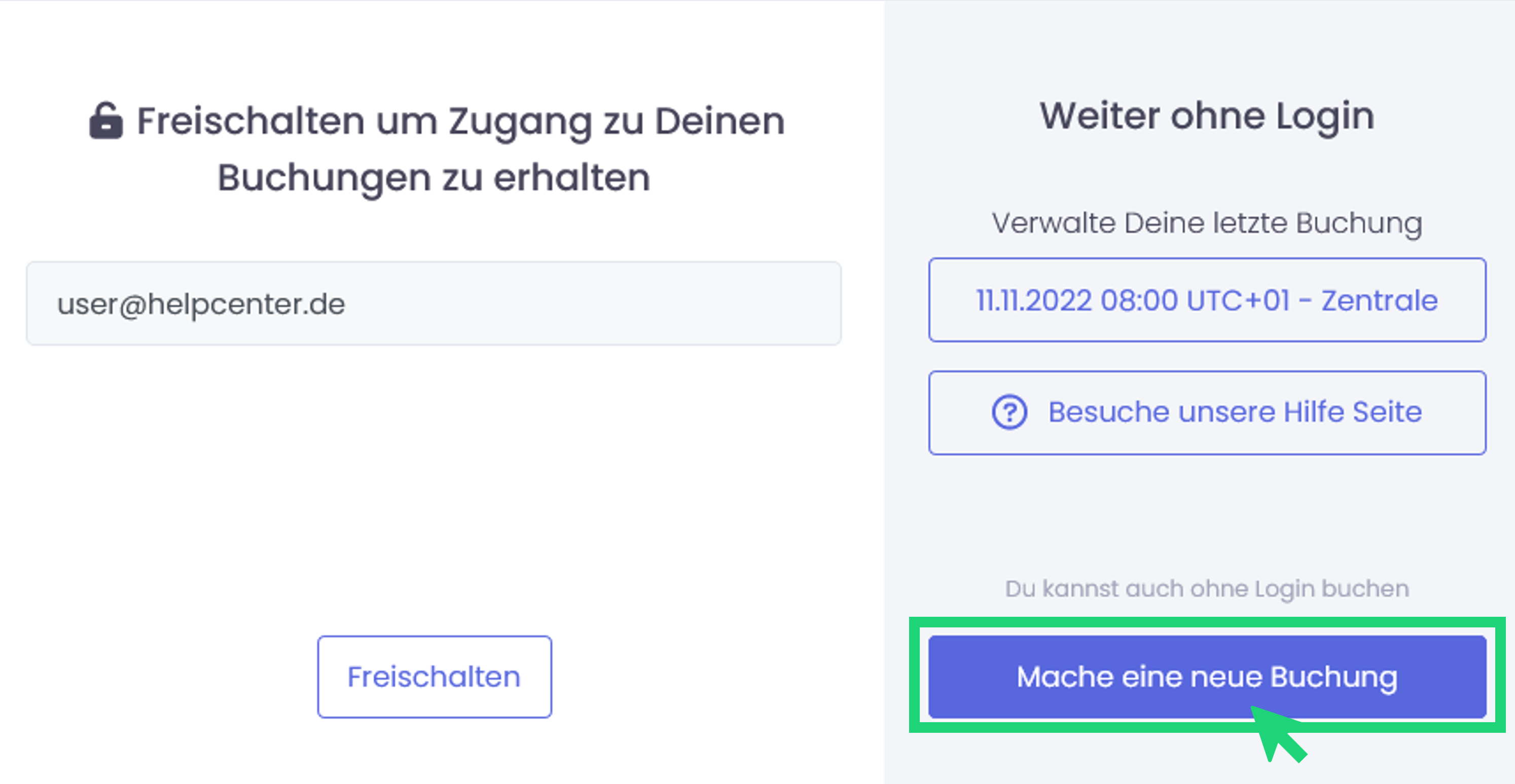 Hier erfährst du, wie du ohne Konto weitere Buchungen erstellen kannst, vorausgesetzt du hast bereits einen Buchungslink erhalten.