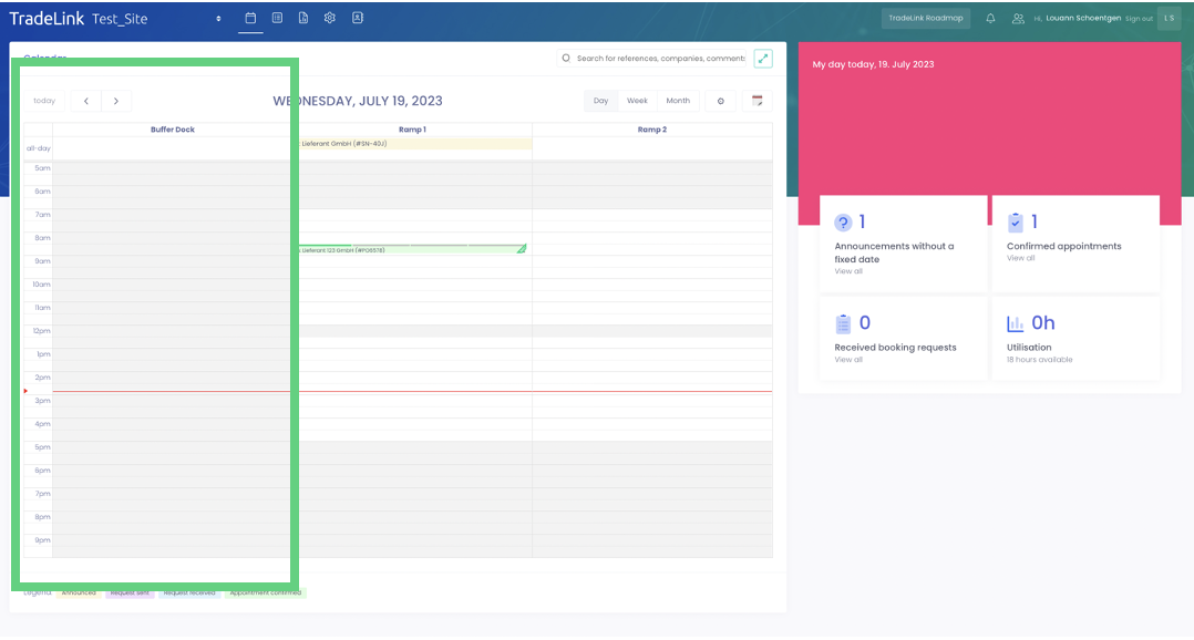 Click on "Create Loading dock" to complete the configuration. The new loading dock will then appear in your calendar.
