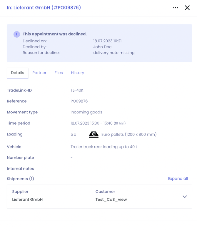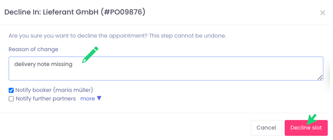 If the information provided is incorrect or incomplete (e.g. delivery bill is missing), you can decline the appointment.
