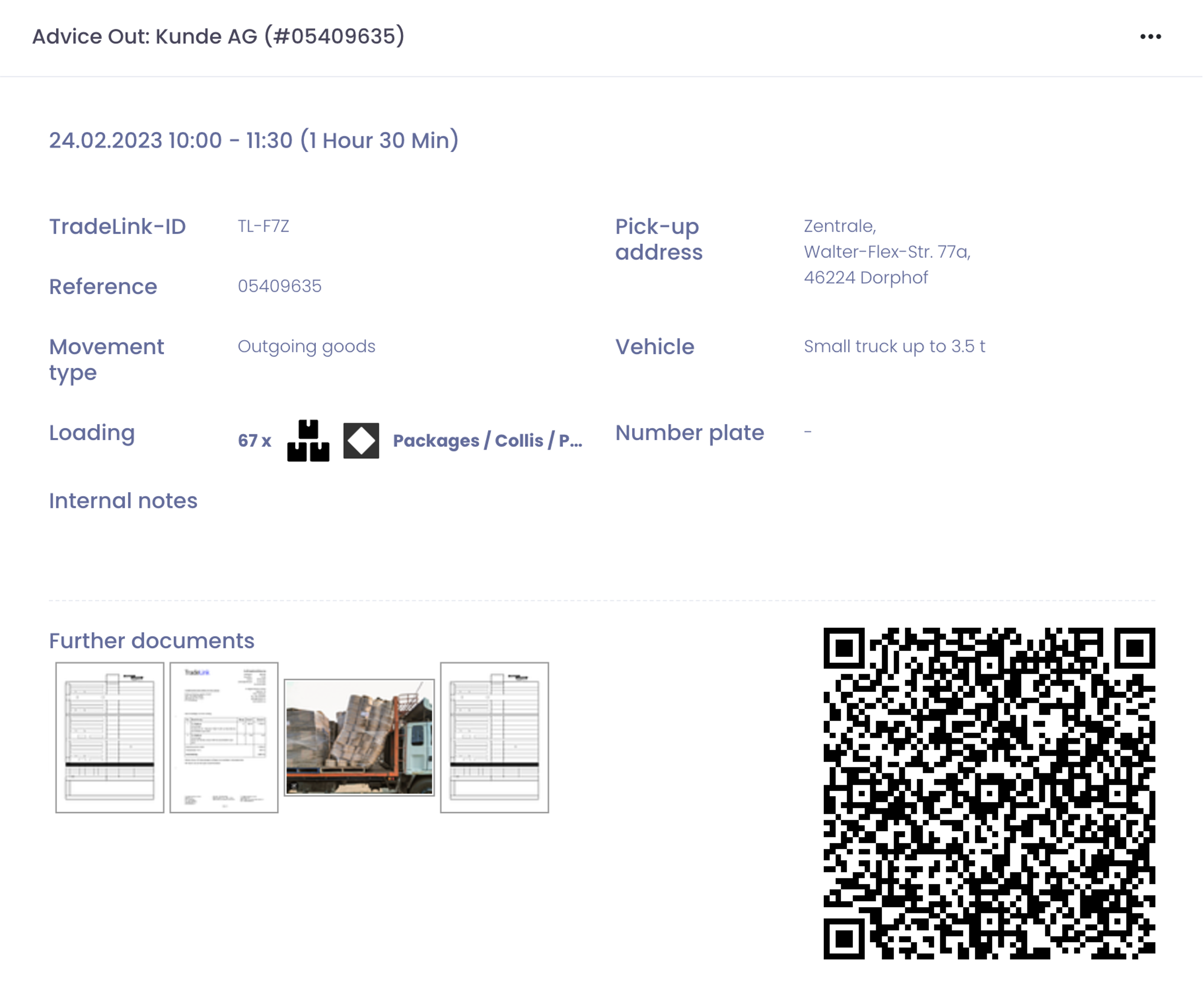 TradeLink offers the function to upload and save all documents and photos directly to your booking. There is no limitation regarding the format. (Signed) delivery notes (e.g. in PDF), pallet notes , as well as photos (e.g. documented load securing, damaged goods) can be uploaded. The comment field can also be used to provide additional information, such as a description of a case of damaged goods.