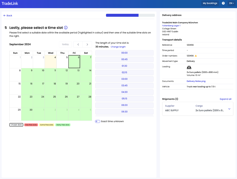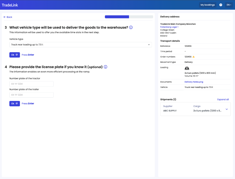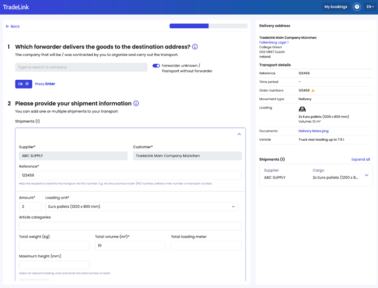 Invitation to complete a booking: Use the new “Invite partner to complete and slot booking” button to invite your delivery partner to complete the booking.