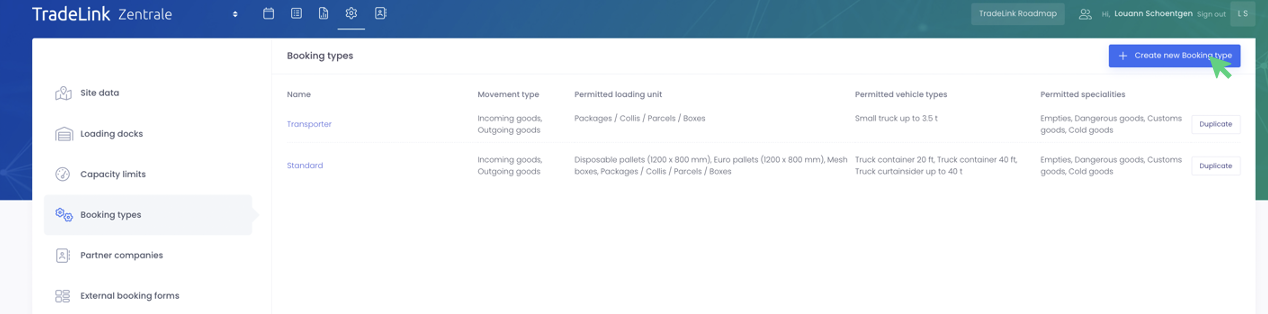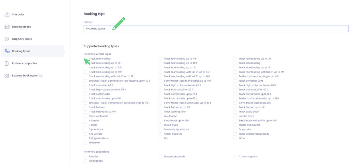 Then you have to select all vehicle types that are supported at the ramp for this booking type.