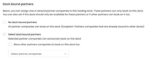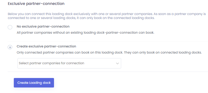 3. At the bottom you can create an “Exclusive partner connection”. Simply select the partner companies that should have access to the loading dock.