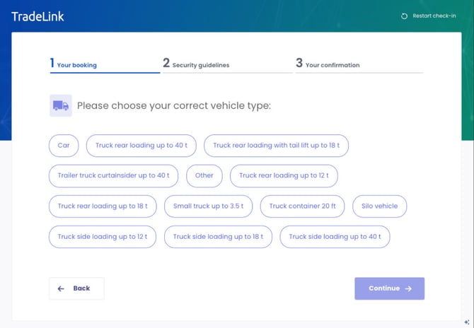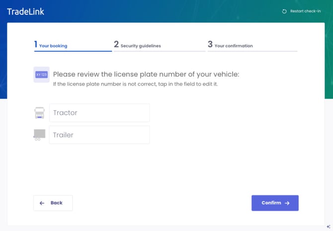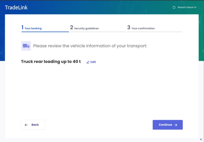 Tip: Drivers with a TL-ID benefit from a 40% faster processing time. Therefore, make sure that the carrier or supplier provides the driver with the TL-ID before arrival.