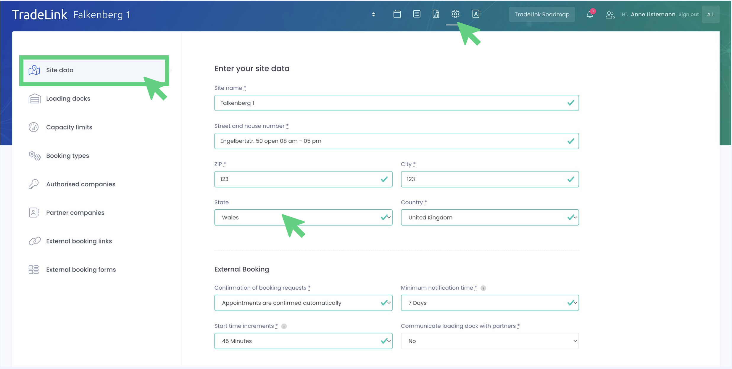 To set this up, go to the site data. Based on your location information, like your federal state, the public holidays are set in the background. Therefore, check once again whether the address data is correct.