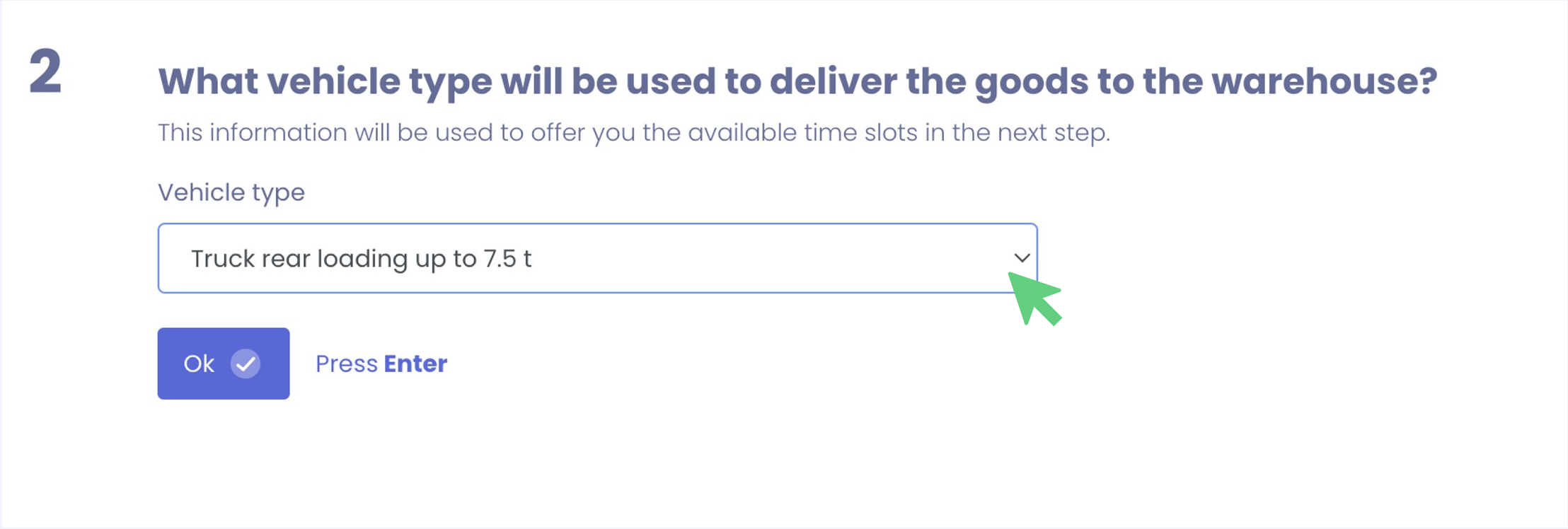 In the next step, select the type of vehicle with which you will deliver the goods to the delivery address and confirm by clicking "Ok" or pressing Enter.