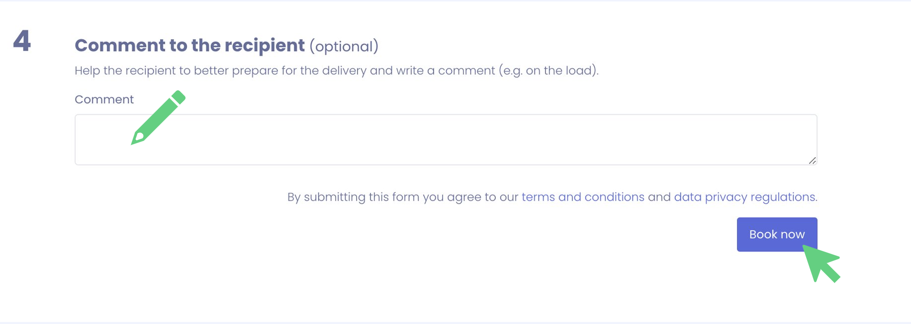 In the last step, you can add an optional comment for the recipient. To finalize your booking, click on "Book now”.