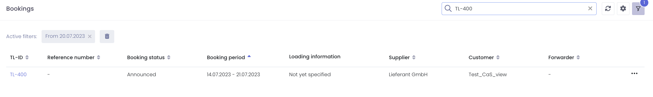 You can enter notes, the TL-ID, company or reference of the respective booking in the search tab at the top.
