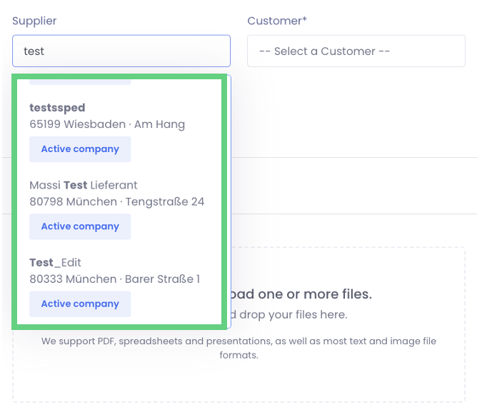 When creating an internal booking, you have the possibility to specify partner companies for this transport. When you enter this information, all active companies with this name will be displayed. The only requirement is that you have already invited the partner to TradeLink.