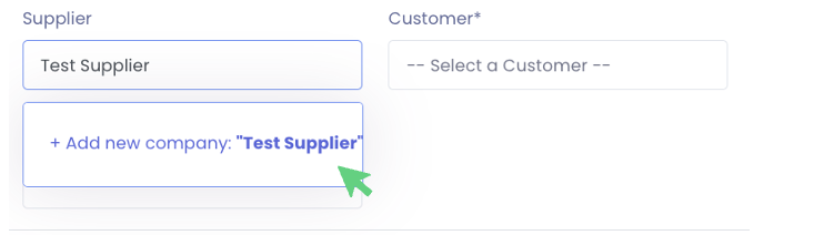 If the partner company you specified has not yet been invited to TradeLink, the option "+ Add new company" will appear. This will create a "shell" without a real user. Therefore, it is important that you invite your partners to TradeLink.
