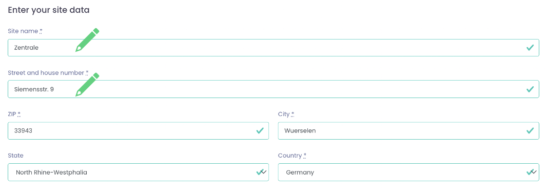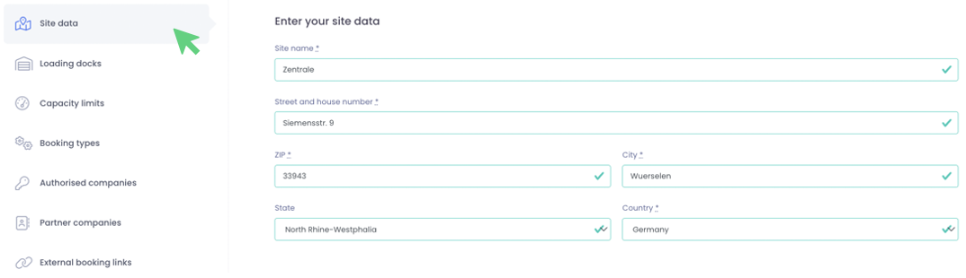 In the site data, you can first adjust the name and address of your location. The name of the location, here under "site name", is also displayed to your partner companies.