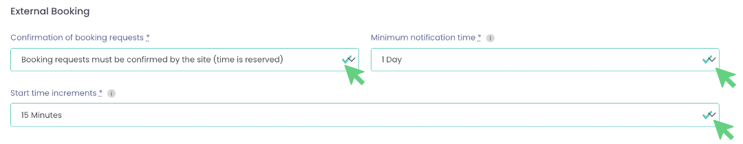In addition, you can set settings for external bookings, including: