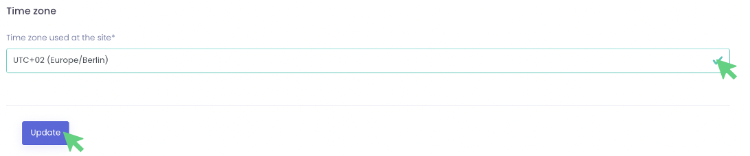 The time zone determines the time zone in which available time slots are displayed to you, your colleagues and all booking partners.