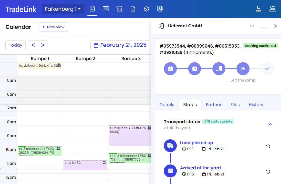 Status points show the current status of a booking and ensure that everyone involved in the warehouse is informed in real time. The next step in the process is visible with every status point that is set. This means that all parties know exactly whether an action is still required. Status points are also the basis for clean and reliable data in the Insights Cockpit. Using TradeLink as a central source of information also simplifies communication with other departments.