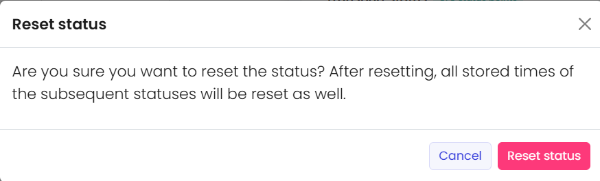 Have you accidentally set the wrong status? No problem! Simply click on the previous status point and confirm with ‘Reset status’ to correct it.