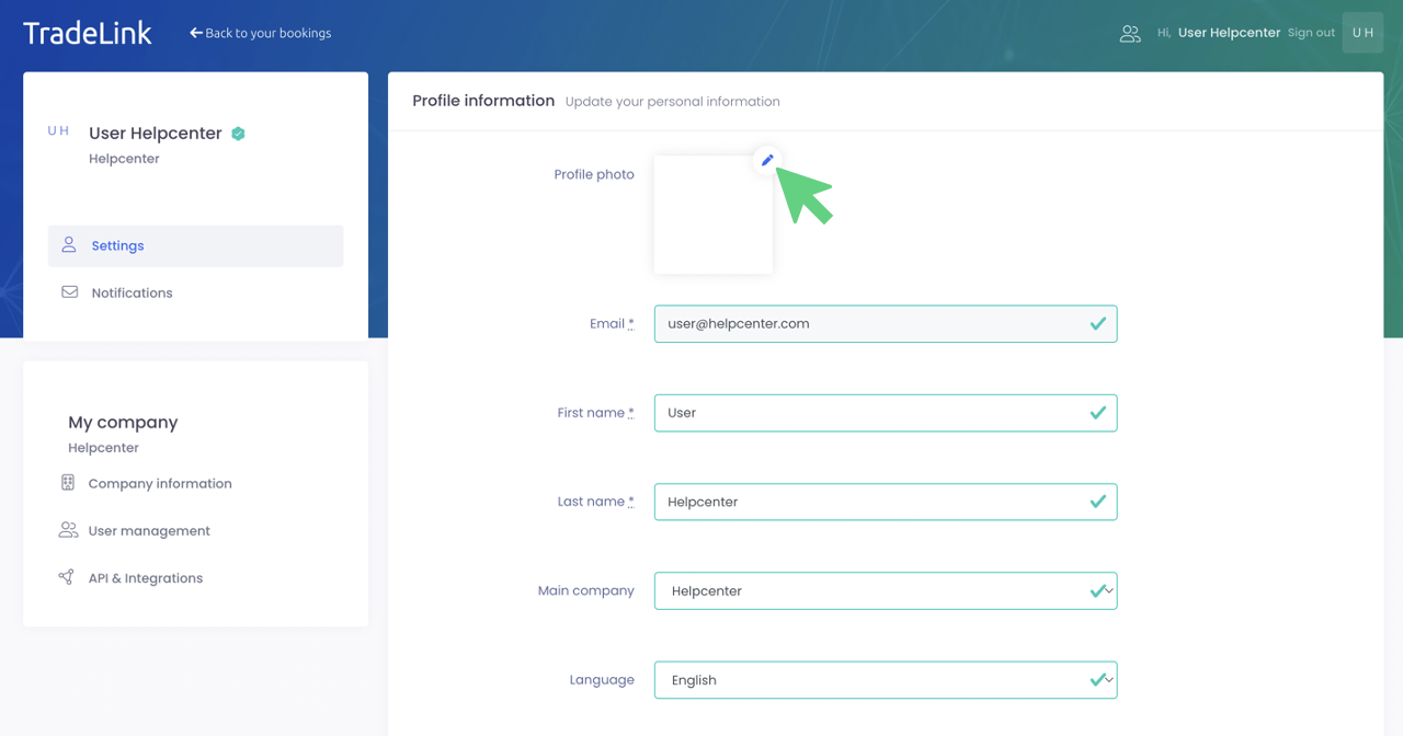 Give your TradeLink account a personal touch and add a profile picture by clicking on the editing pen in the upper right corner.
