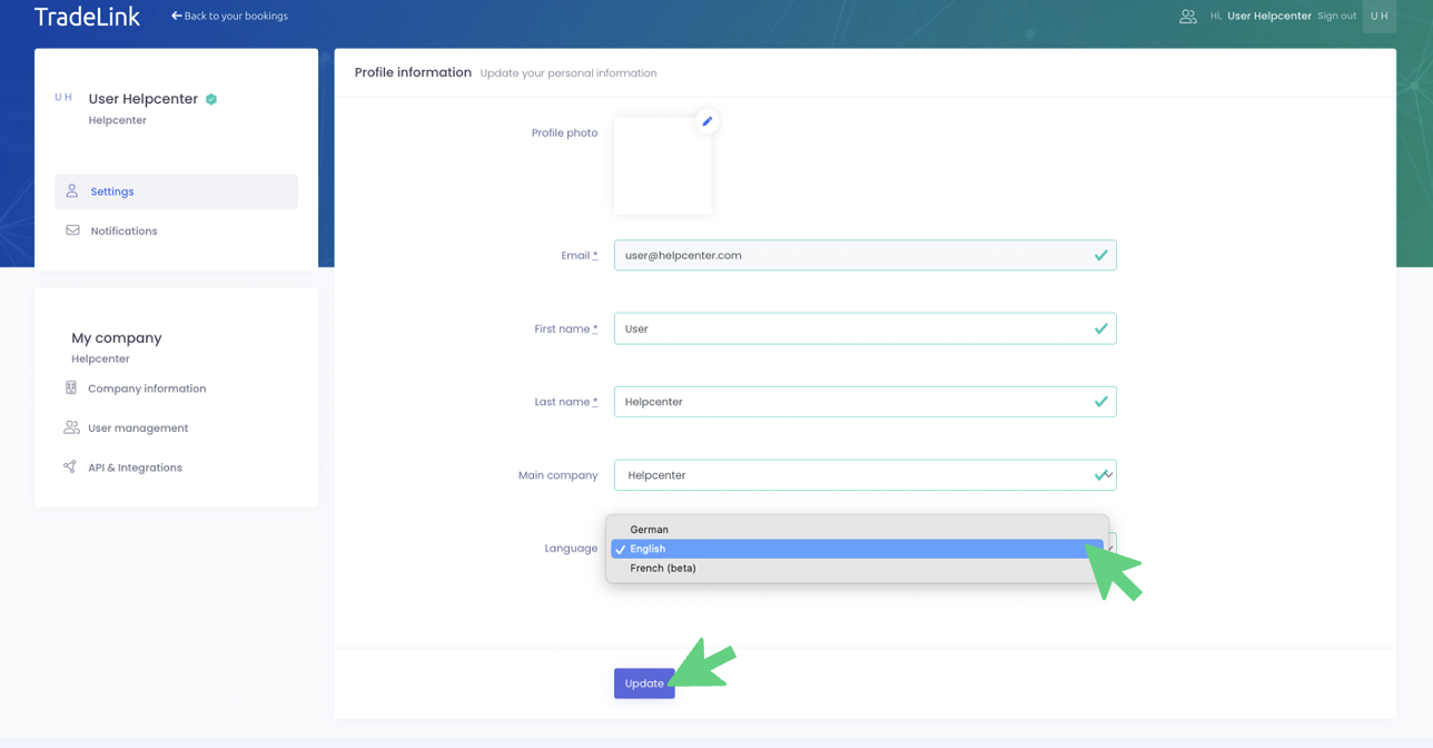 This article explains how and where you can edit your personal profile settings as well as the language settings in TradeLink.