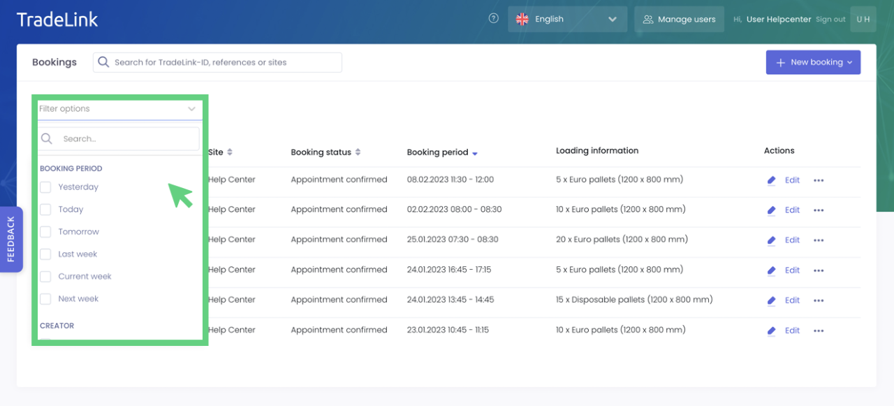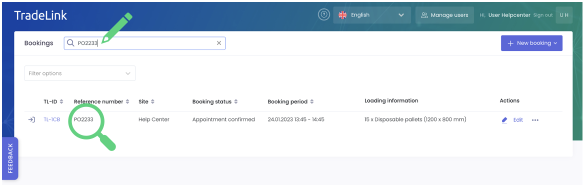 You can find your bookings in your account using the search function. You can search for your bookings by entering, for example, the TradeLink ID, the booking reference and other items.
