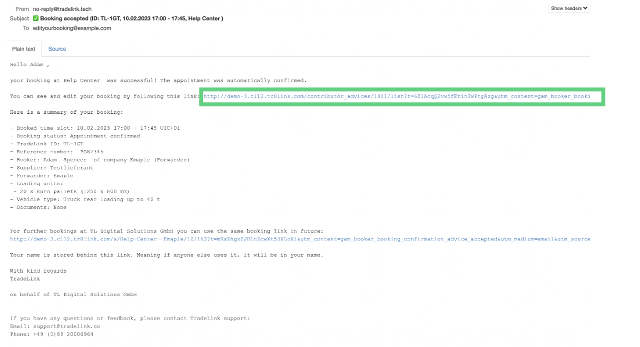 We recommend that you set up a TradeLink account so that you can easily access your bookigs at any time. You can find out how to set up your own TradeLink account here: