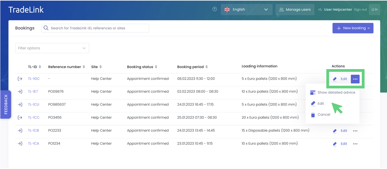 You can make changes to your bookings after they have been created. The changes are recorded in the change log “History”.