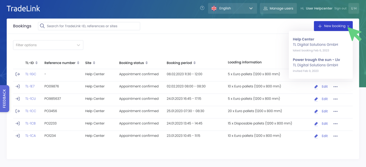 Once you have both created a TradeLink account and confirmed the invitation to the additional location by clicking "Collaborate Digitally Now" in your invitation email, you can easily choose which location to book at in your account overview under “new booking”.