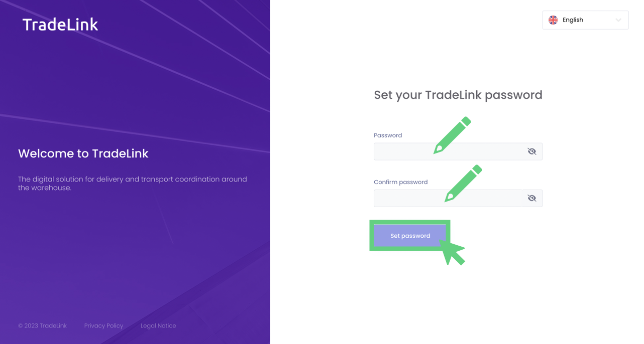 In a new window we welcome you to TradeLink and ask you to create your password.