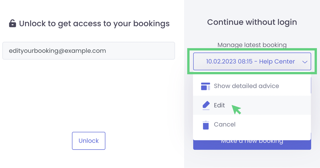 Now you can edit your booking and make adjustments. How this is done is shown here: